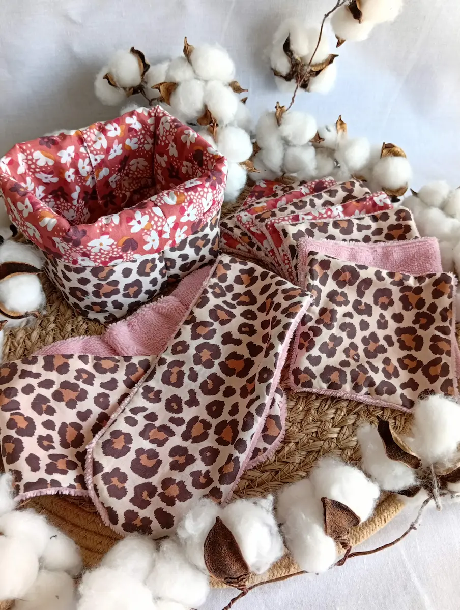 👉 La collection Fleurs Audacieuses est disponible en coffret Panier & 8 Lingettes Réutilisables en Bambou (sans bandeau)