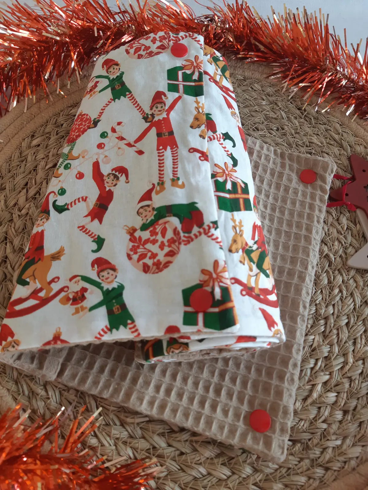 Cette année, offrez à votre table une décoration à la fois durable et raffinée. Mon essuie-tout lavable en éponge édition limitée « Noël » ont été pensés pour être multitâches : parfaits pour absorber les petits imprévus en cuisine, ils sont surtout les compagnons idéaux de vos repas de fête.